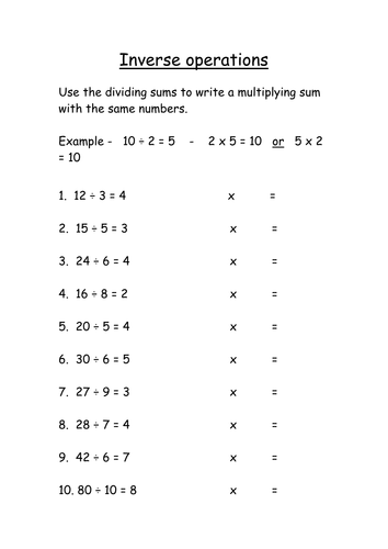 You can choose the types of problems to solve. What are inverse operations and how do we use them to solve two step equations. In these worksheets, students will work with direct and inverse variation. Inverse operation worksheets teacher worksheets inverse operations worksheet teaching resources year 3 inverse operations worksheets lesson plans and More lessons for algebra math worksheets. Using inverse operations to write a multiplication as a division. The following diagrams show how to find the inverse of a function. Scroll down the page for more. Award winning educational materials like worksheets, games, lesson plans and activities designed to help kids kids will learn more about inverse operations by reviewing their subtraction problems. Whenever you actually need to have assistance with math and in particular with inverse operations worksheets or equations by factoring come pay a visit to us at mathmatik.com. Choose from 262 different sets of flashcards about inverse operations on quizlet. Order of operations worksheets generator. Explore our order of operations worksheets and solve arithmetic expressions using pemdas or rich with scads of practice, our printable order of operations worksheets get learners in grade 4.
